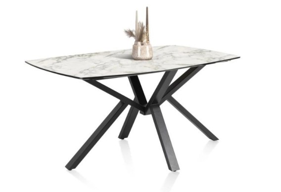 Stół Henders & Hazel Palace to elegancki i nowoczesny mebel, który zachwyca swoją prostotą i funkcjonalnością. Jego imponujący blat o wymiarach 240 x 110 cm naśladuje wygląd kamienia w kolorze białym, co nadaje mu wyjątkowego charakteru. Wykonany z Primo Laminato (HPL), materiału odpornego na zarysowania i łatwego w utrzymaniu, idealnie sprawdzi się w codziennym użytkowaniu. Zamiast tradycyjnych nóg, stół posiada centralną podstawę typu pająk, wykonaną z czarnego metalu, która dodaje mu solidności, a jednocześnie tworzy wyjątkowy, nowoczesny design.